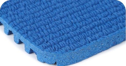 上下一体通体材料,产品整体含胶量高达30%以上,抗撕裂性高;结合独有的卷材技术及配方,优化分子结构,具备出色的体感柔韧性及高弹性;有效降低传统预制型跑道接缝处崩裂、弯道裂板。